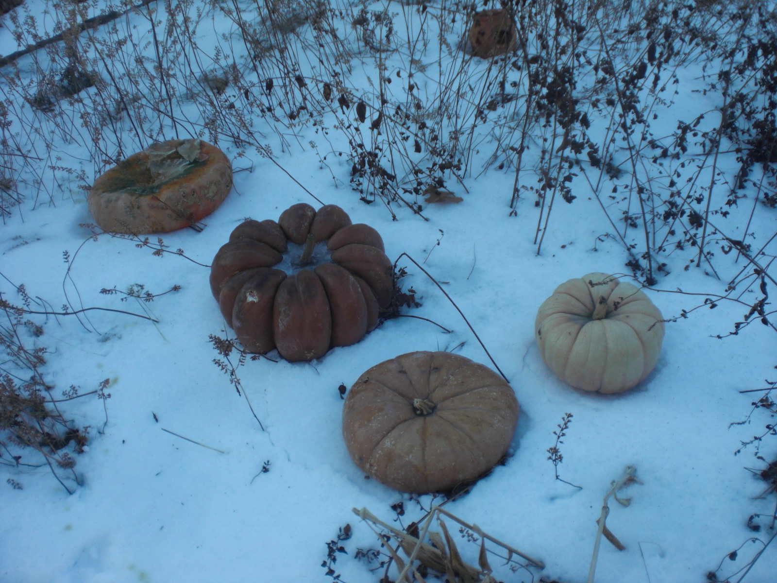 今日は0℃以上あるみたい、雪も随分とけてるし、カボチャも柔らかくなってる。。。